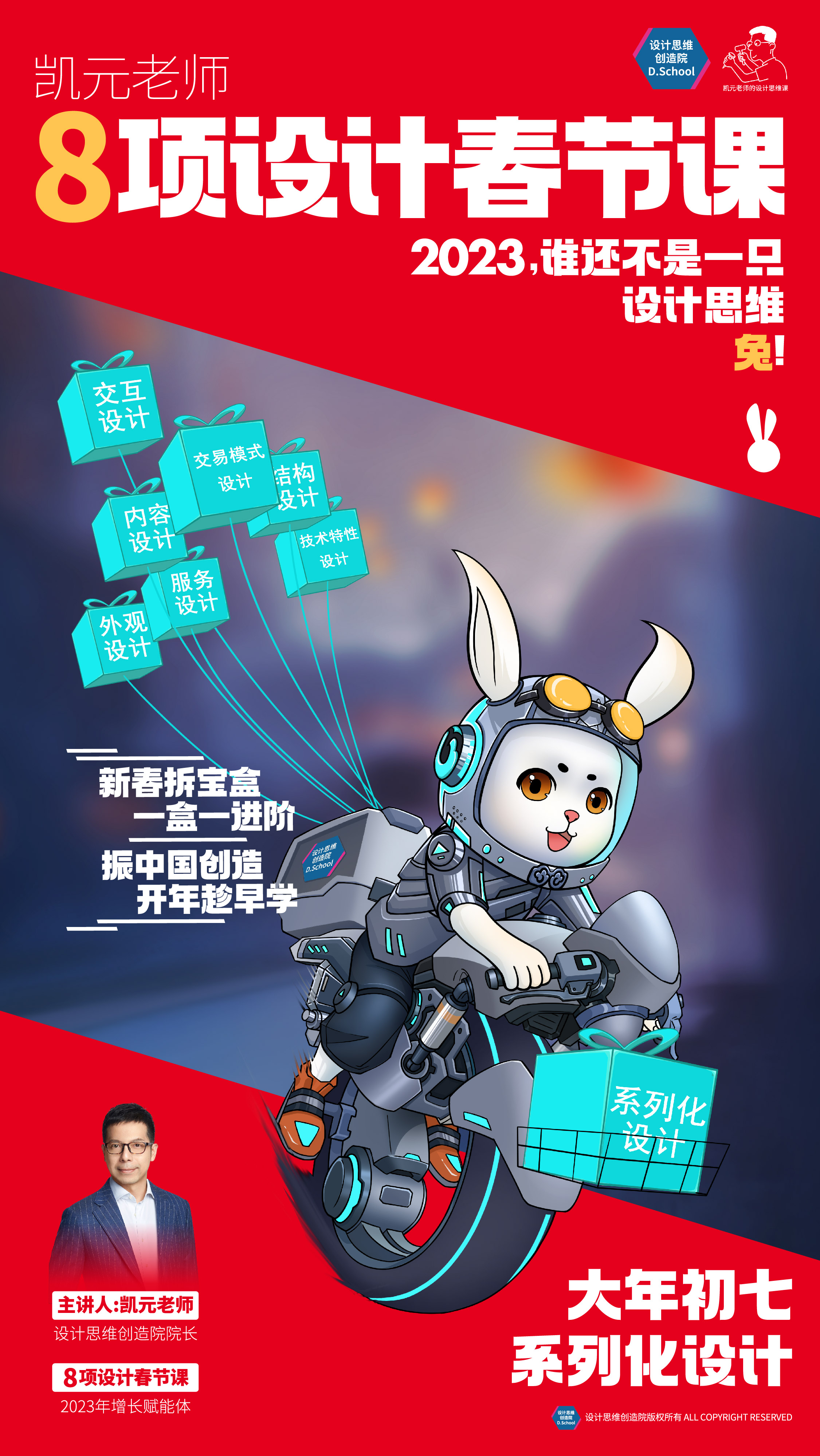 今年春节,「创造院」为大家诚挚献上了“2023,谁还不是一只设计思维兔!”之八项设计春节课,言简意赅地讲解了“以用户为中心”的外观设计、结构设计、技术特性设计、交互设计、内容设计、服务设计、系列化设计和交易模式设计。