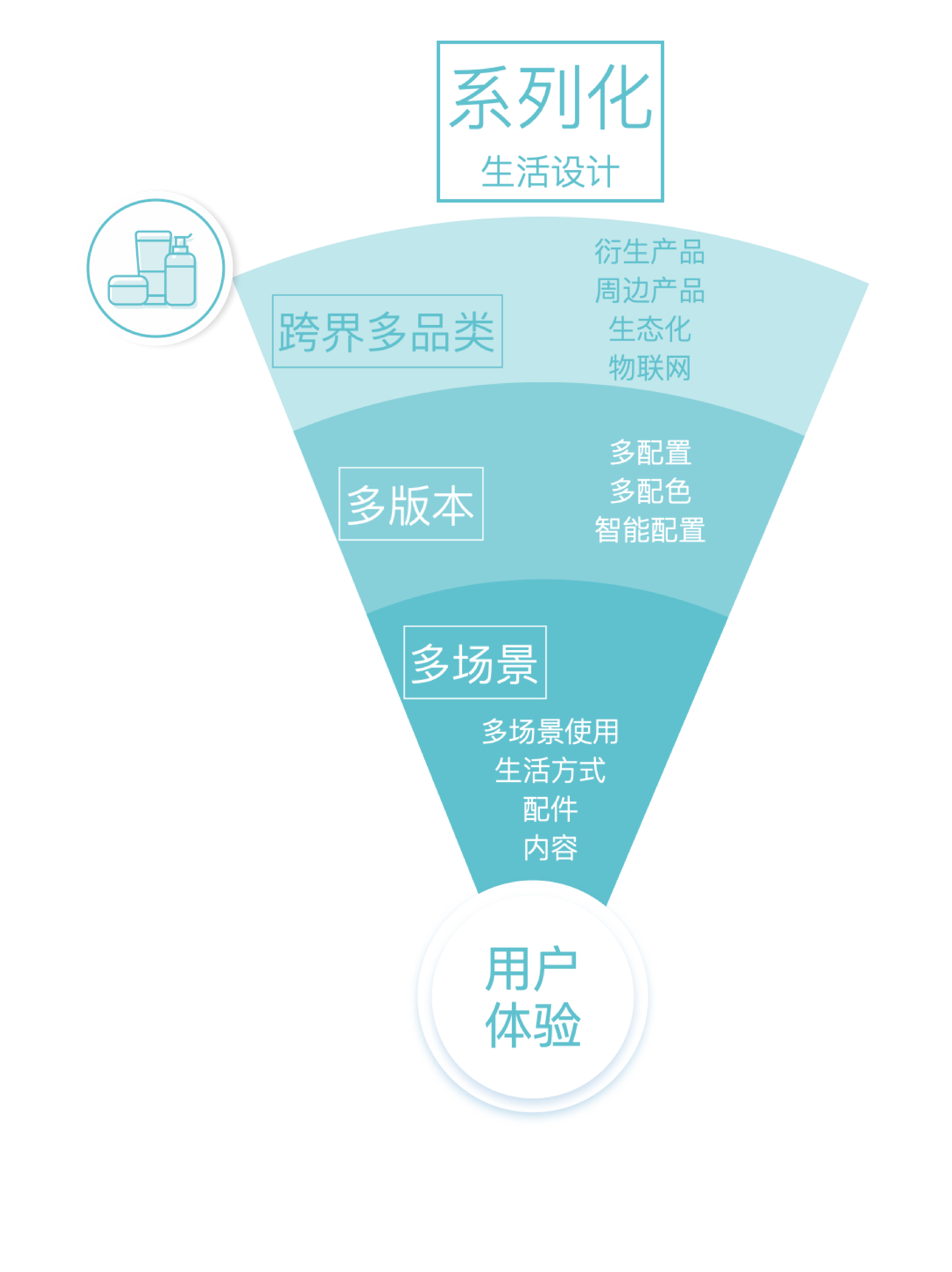 3.跨界多品类。运用同样的技术和模块进行迁移跨界创新,产生更多生态化又互通互联的产品生态。