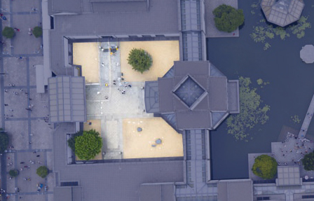 1.将建筑融于环境:打通入口处步行街、河畔小广场和新馆前庭空间三者的隔阂,形成南北进深约80米的空旷地带。当游客从狭窄的街道踏进入口时,便会顿时产生豁然开朗的感觉。
