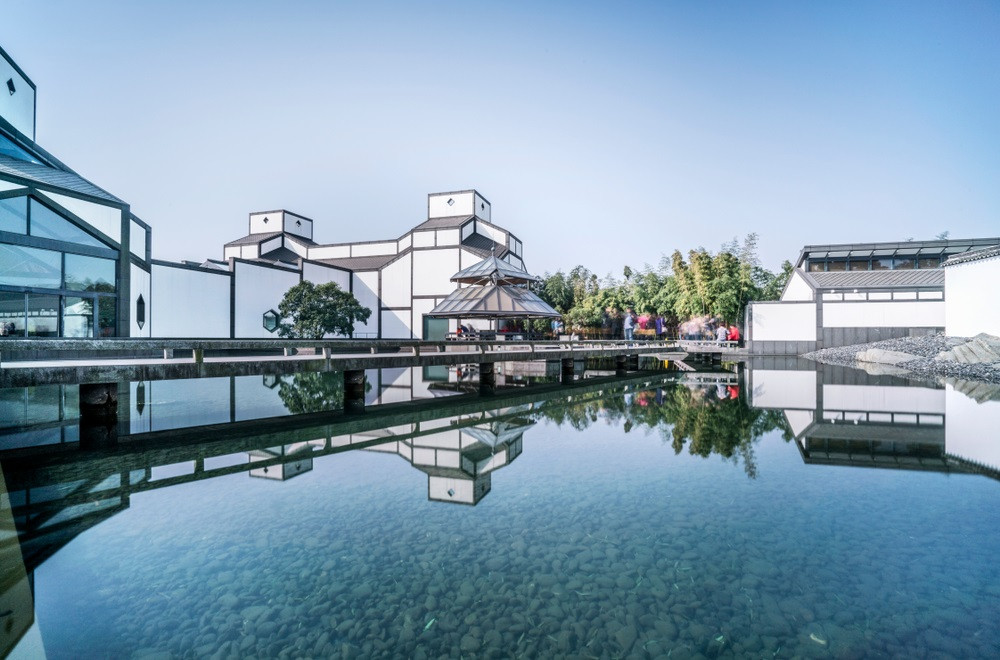 2.以水留白:苏博建筑面积仅占总面积的58%,剩下的空间留给水扮演留白的角色,以无衬有,沟通了各个建筑群落,也拓展了空间。