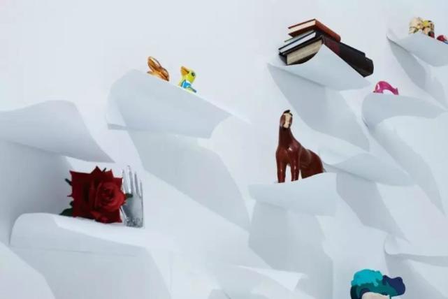 比如日本设计师小野直树(Naoki Ono)和山本由纪(Yuki Yamamot)设计的一款壁架【Blow】,是将A4大小的薄钢板卷出纸张飞动的各个瞬间,然后渐次定格在墙壁上。