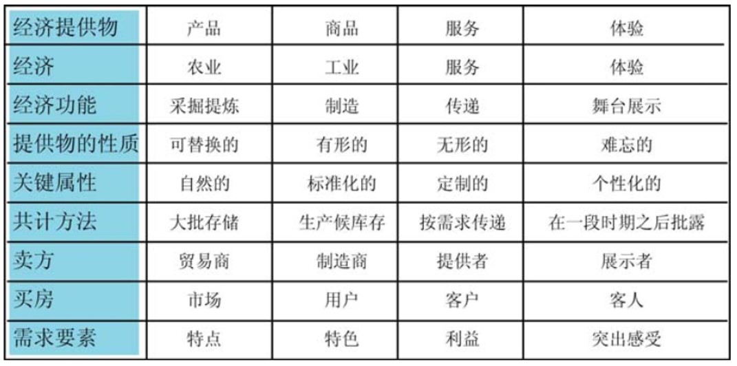 可见,“叙事性设计”的综合性很强。而且,因为这是一套帮助用户理解设计作品的方法,更重视用户在使用作品中的情感体验。所以,服务意识很强的叙事性设计,恰好吻合了当代设计的两大趋势:体验经济(详见下图最后一列)、以人为本。