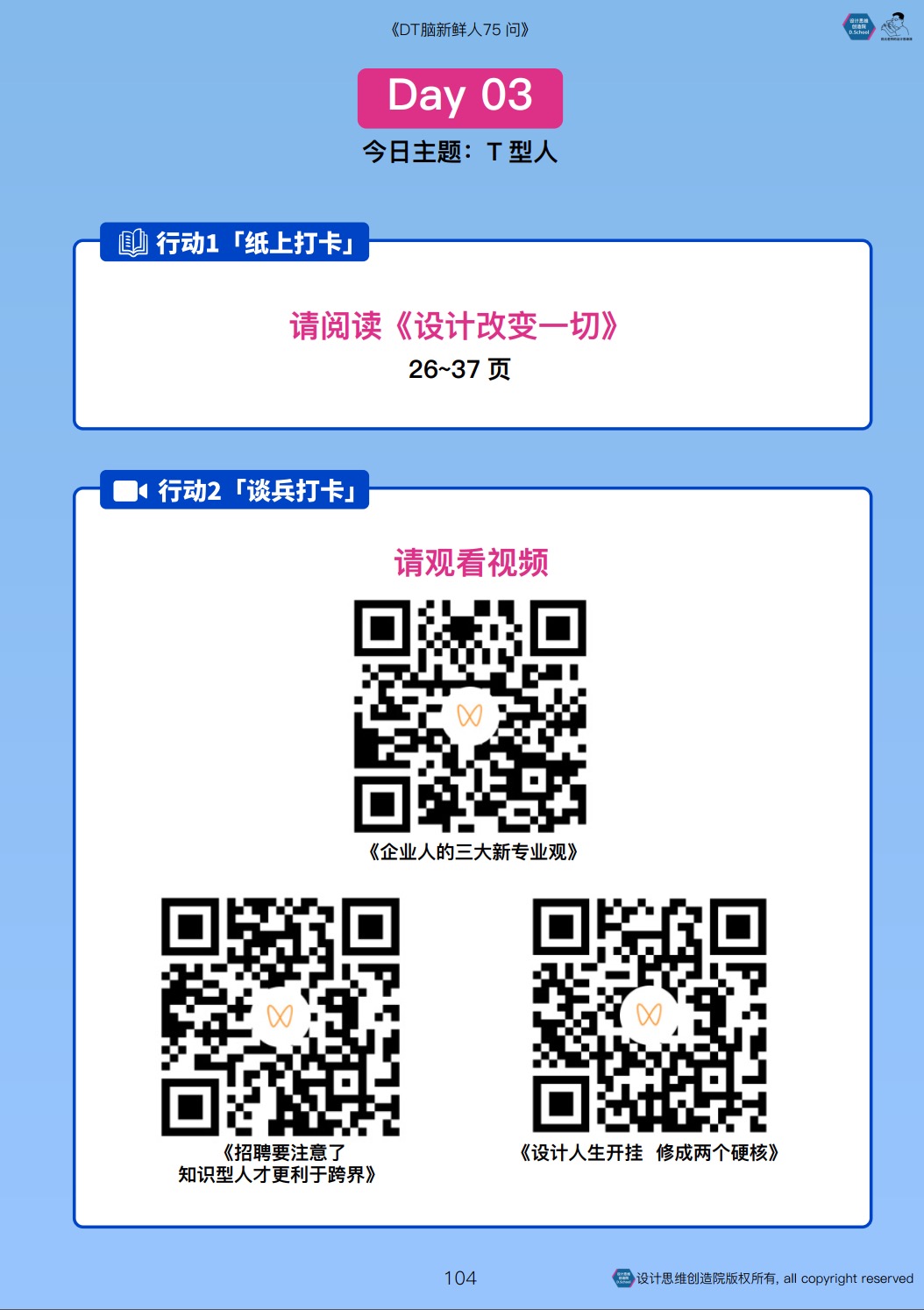 为了能让你得到系统学习,我们还收录了此次「设计思维21天早鸟营」的全部作业,无论是从0~1做出一款产品,还是将DT应用到非商业领域(比如教育、社会基建),亦或是训练自己成为T型人乃至DT教练,均有涉及。